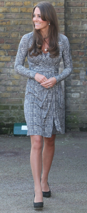 She's baaaaack! Kate Middleton stepped out this past week, finally officially revealing her "bump." While I do find it insane that people are so obsessed with this "bump watch" (Did I even just write that??), it is very nice to see her out and about again since she was so sick. And she brought it. That wrap dress is so flattering, and not that she isn't always glowing, but doesn't it seem like there might be a little extra pep in her step?